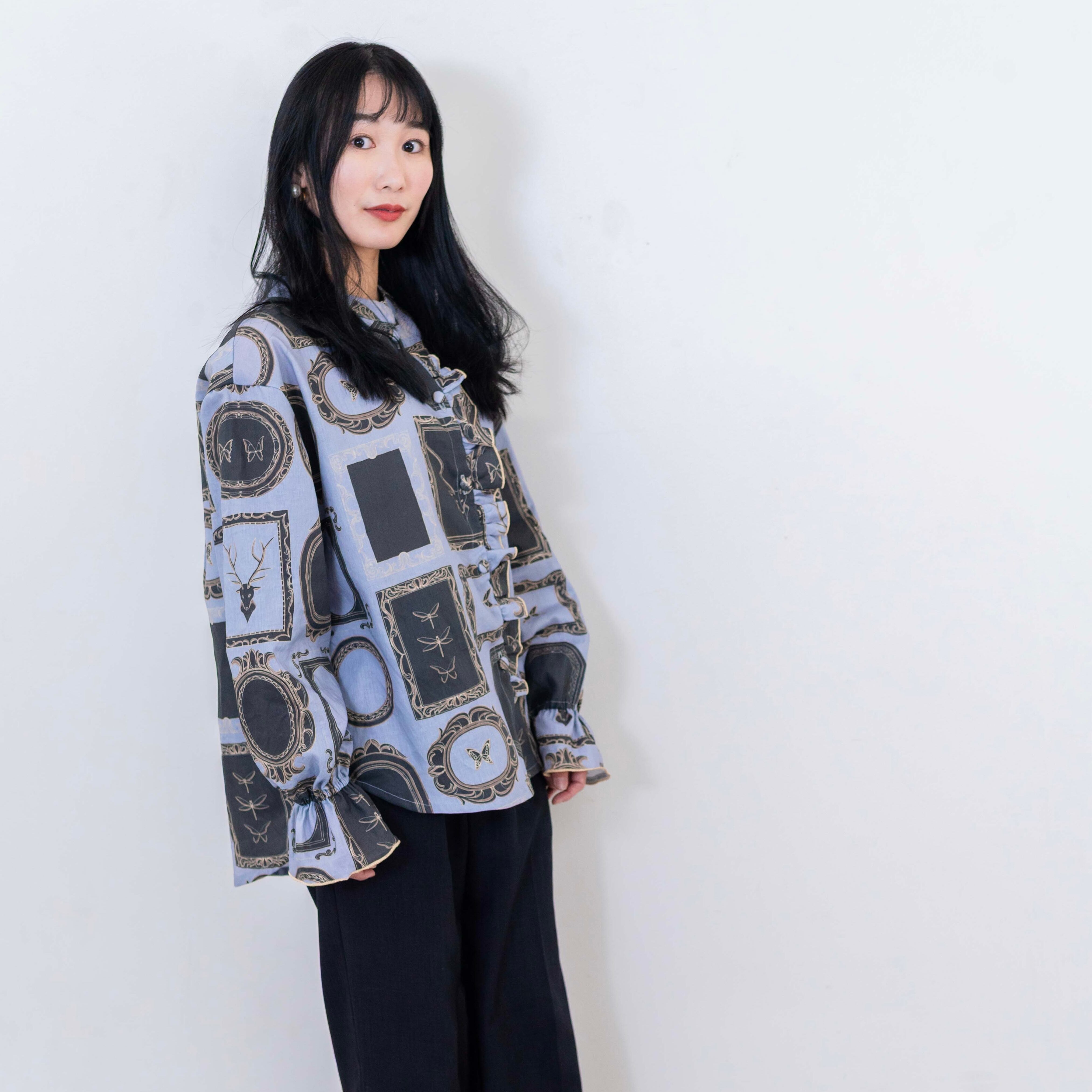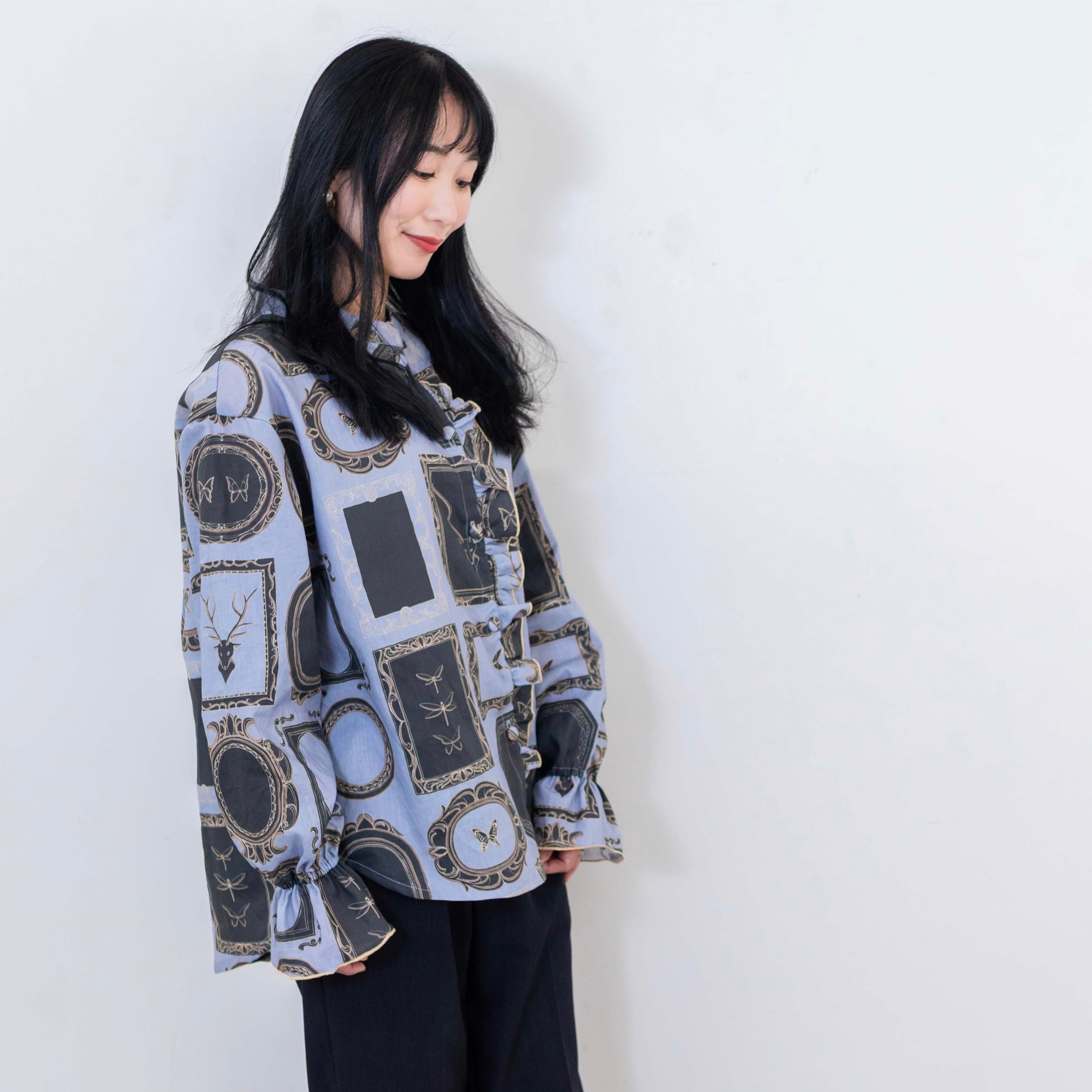 Ladies フロントフリルシャツ/“At that time“/nunocoto生地使用/お揃い/秋服