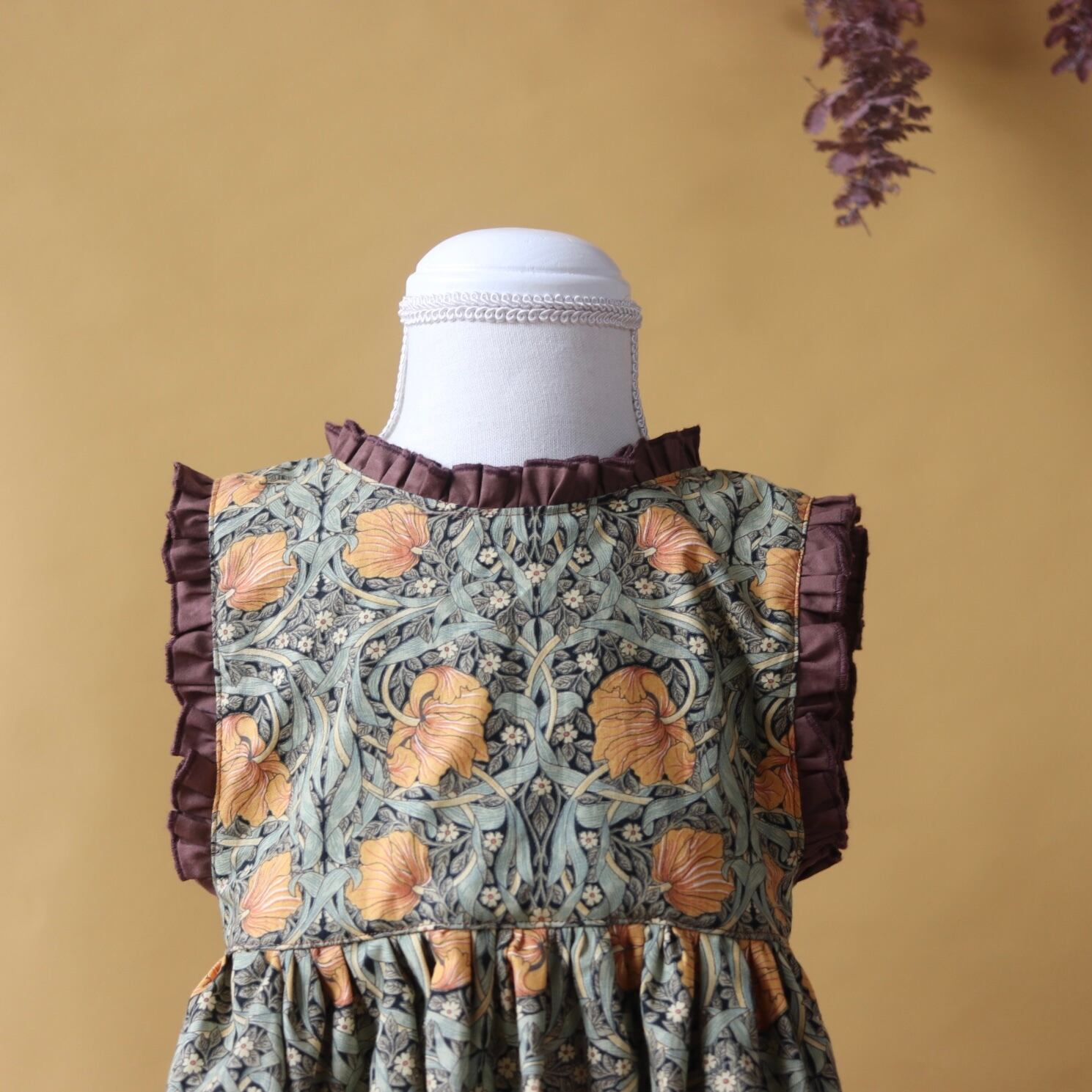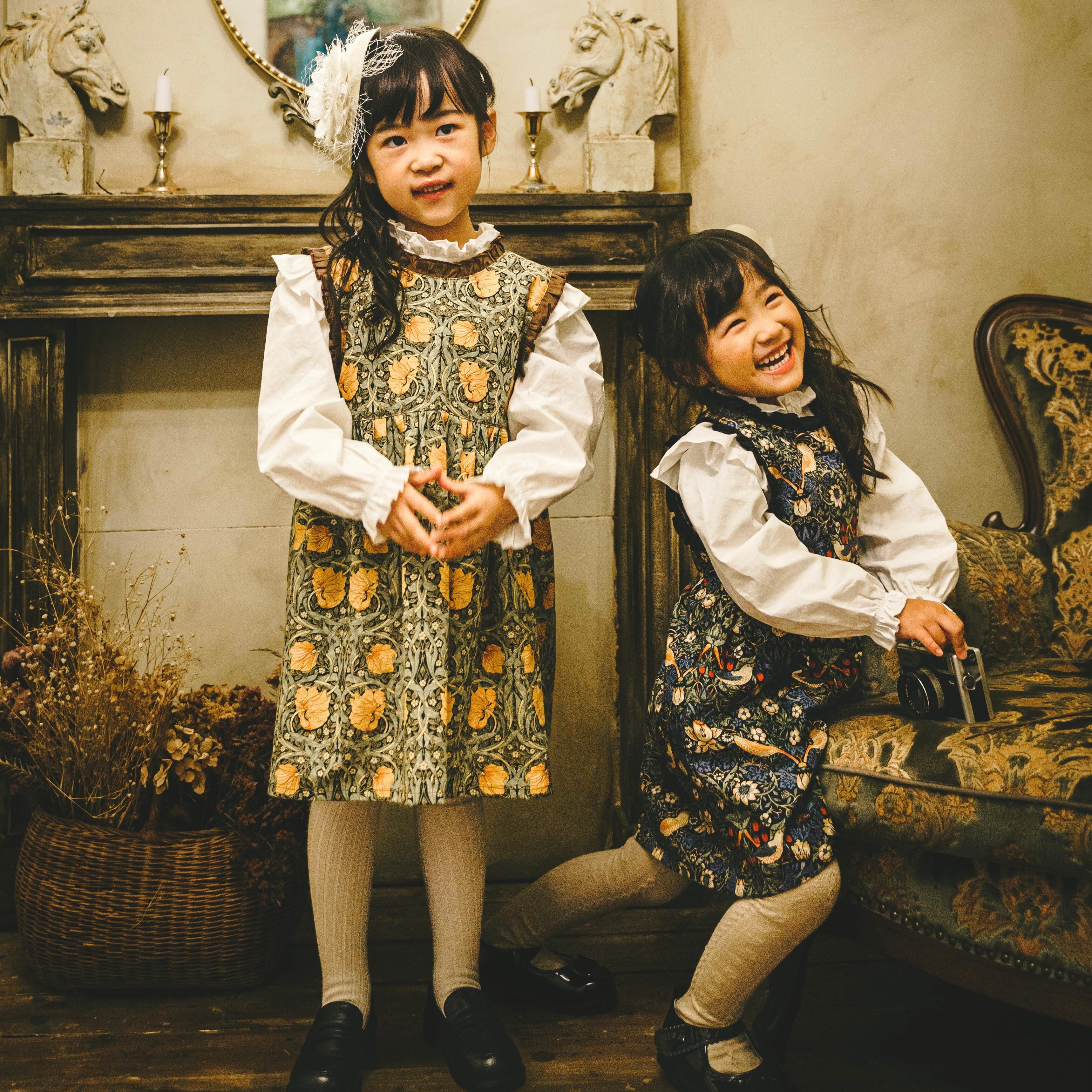 Girls モリスで着飾るクラシカルワンピース/ウィリアムモリス・ピンパーネル生地使用/総柄/お揃い